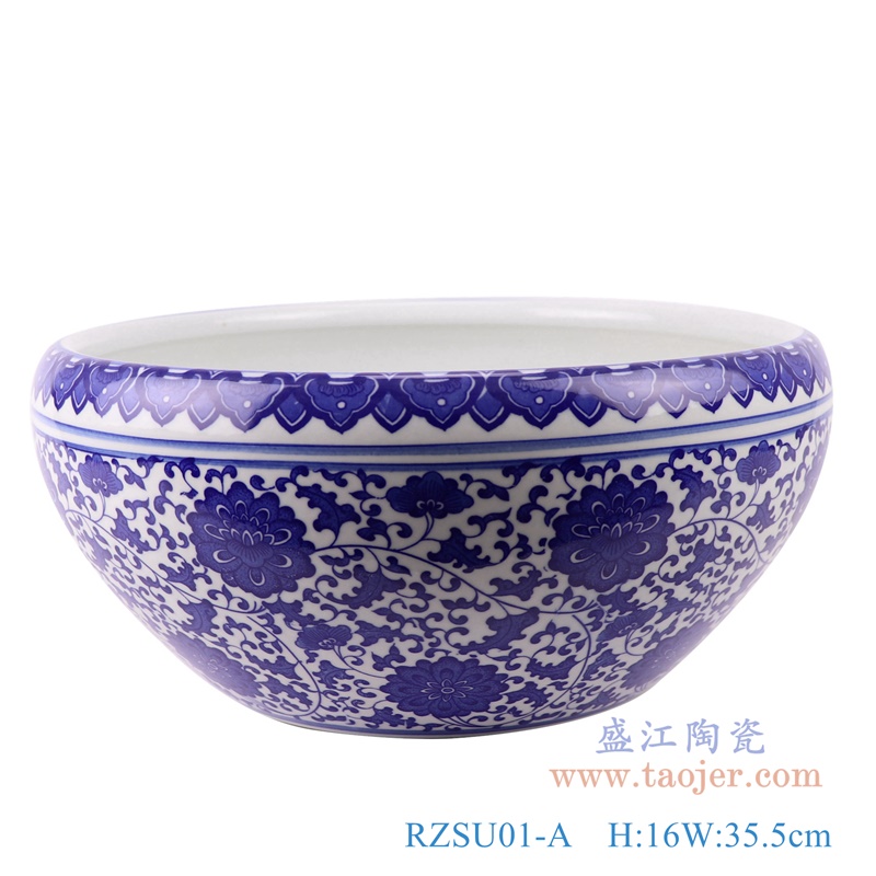 RZSU01-B 鱼缸小号青花养金鱼缸睡莲荷花 高12.5 直径24 口径21.5 底径14.5 重量2.05KG