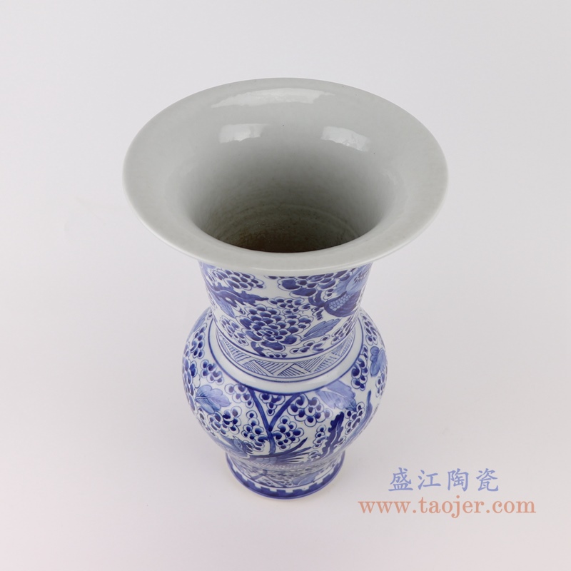 RYLU195青花凤凰牡丹花瓶花菇 高36.5 直径23.5 口径12.8 底径11 重量3.65KG