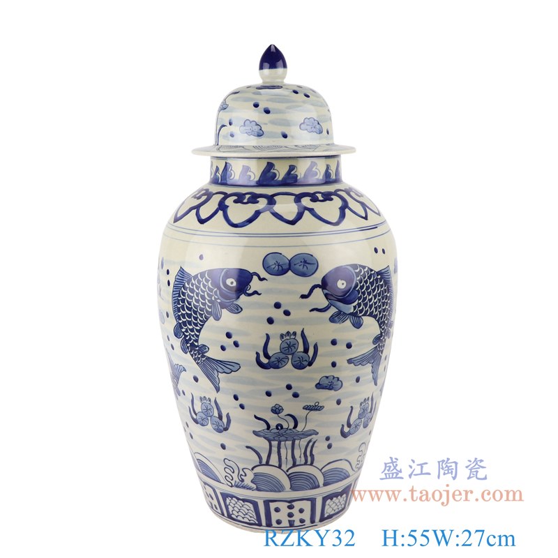 青花鱼藻纹荷花将军罐;产品编号:RZKY32       产品尺寸(单位cm):  高:55直径:27口径:底径:18重量:9.36KG