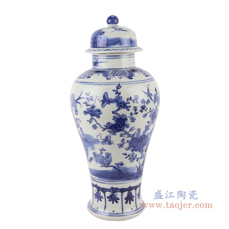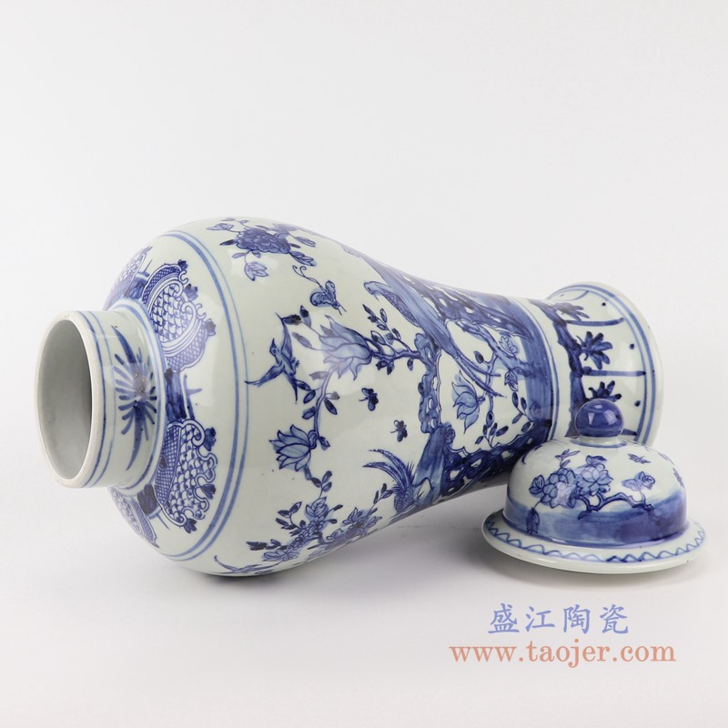 青花瓷(blue and white porcelain),又称白地青花瓷,常简称青花,是中国瓷器的主流品种之一,属釉下彩瓷。青花瓷是用含氧化钴的钴矿为原料,在陶瓷坯体上描绘纹饰,再罩上一层透明釉,经1300℃左右高温还原焰烧制而成。钴料烧成后呈蓝色,具有着色力强、发色鲜艳、烧成率高、呈色稳定的特点。汉族劳动人民制作瓷器的历史悠久,品种繁多。原始青花瓷于唐宋已见端倪,成熟的青花瓷则出现在元代景德镇的湖田窑。明代青花成为瓷器的主流。清康熙时发展到了顶峰。景德镇青花瓷以其烧造精致而独占熬头,造型优美,色彩绚丽,装饰精美,是景德镇四大传统名瓷之一,它无铅无毒,耐酸耐磨,面色经久不退,素有“永不凋谢的青花”之称。 本品坯胎全手工拉坯制作,釉面和青花料采用高档仿清颜料。瓶身山水风景图团花簇拥,构图优美,瓶颈花卉、圈足纹图和瓶身山水风景图交相辉映,相得益彰,层次清晰,瓷质温和细腻,釉色古朴清丽,晶莹丰润,清新养目,极具古意,具有较高的艺术欣赏和实用价值。