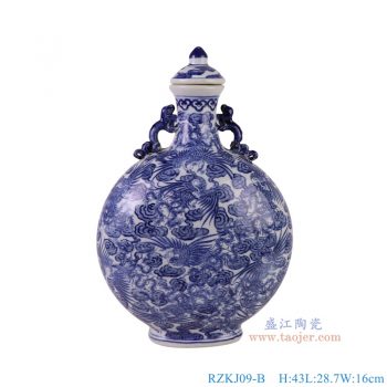 青花瓷(blue and white porcelain),又称白地青花瓷,常简称青花,是中国瓷器的主流品种之一,属釉下彩瓷。青花瓷是用含氧化钴的钴矿为原料,在陶瓷坯体上描绘纹饰,再罩上一层透明釉,经1300℃左右高温还原焰烧制而成。钴料烧成后呈蓝色,具有着色力强、发色鲜艳、烧成率高、呈色稳定的特点。汉族劳动人民制作瓷器的历史悠久,品种繁多。原始青花瓷于唐宋已见端倪,成熟的青花瓷则出现在元代景德镇的湖田窑。明代青花成为瓷器的主流。清康熙时发展到了顶峰。景德镇青花瓷以其烧造精致而独占熬头,造型优美,色彩绚丽,装饰精美,是景德镇四大传统名瓷之一,它无铅无毒,耐酸耐磨,面色经久不退,素有“永不凋谢的青花”之称。 本品坯胎全手工拉坯制作,釉面和青花料采用高档仿清颜料。瓶身山水风景图团花簇拥,构图优美,瓶颈花卉、圈足纹图和瓶身山水风景图交相辉映,相得益彰,层次清晰,瓷质温和细腻,釉色古朴清丽,晶莹丰润,清新养目,极具古意,具有较高的艺术欣赏和实用价值。