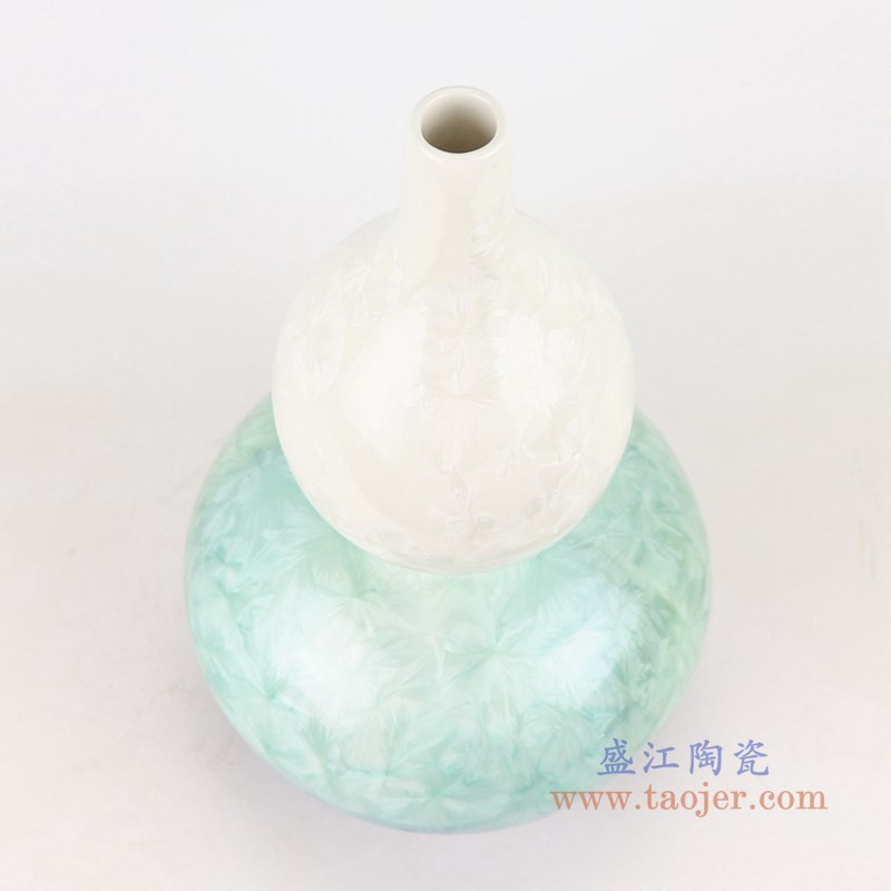 结晶釉白绿蓝尖嘴葫芦瓶;产品编号:RZCU07 产品尺寸(单位cm): 高:34.5直径:19口径:2.4底径:9.7重量:1.55KG