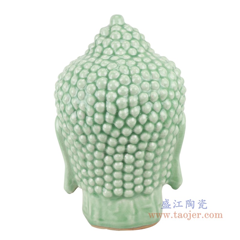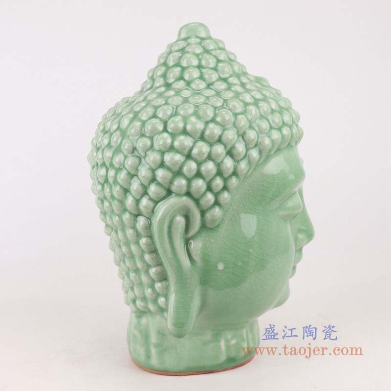 颜色釉豆青雕刻佛头佛像;产品编号:RZSo01 产品尺寸(单位cm): 高:33直径:20.6口径:底径:13重量:3.1KG