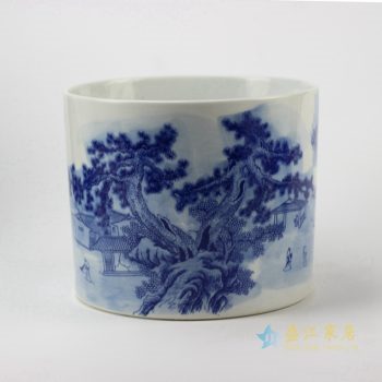 青花瓷(blue and white porcelain),又称白地青花瓷,常简称青花,是中国瓷器的主流品种之一,属釉下彩瓷。青花瓷是用含氧化钴的钴矿为原料,在陶瓷坯体上描绘纹饰,再罩上一层透明釉,经1300℃左右高温还原焰烧制而成。钴料烧成后呈蓝色,具有着色力强、发色鲜艳、烧成率高、呈色稳定的特点。汉族劳动人民制作瓷器的历史悠久,品种繁多。原始青花瓷于唐宋已见端倪,成熟的青花瓷则出现在元代景德镇的湖田窑。明代青花成为瓷器的主流。清康熙时发展到了顶峰。景德镇青花瓷以其烧造精致而独占熬头,造型优美,色彩绚丽,装饰精美,是景德镇四大传统名瓷之一,它无铅无毒,耐酸耐磨,面色经久不退,素有“永不凋谢的青花”之称。 本品坯胎全手工拉坯制作,釉面和青花料采用高档仿清颜料。瓶身山水风景图团花簇拥,构图优美,瓶颈花卉、圈足纹图和瓶身山水风景图交相辉映,相得益彰,层次清晰,瓷质温和细腻,釉色古朴清丽,晶莹丰润,清新养目,极具古意,具有较高的艺术欣赏和实用价值。