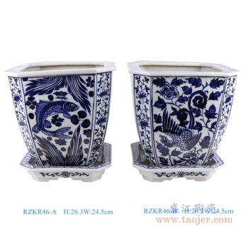 RZKT04-AA 青花人物仕女婴戏童子坛罐茶叶罐, 高25直径23口径底径17重量2.7KG