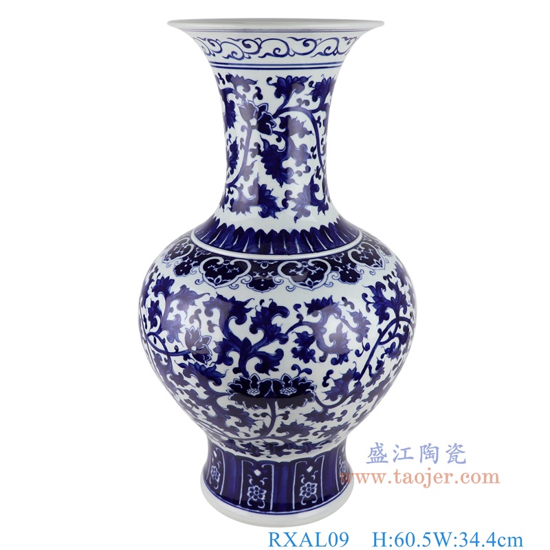 青花缠枝莲赏瓶大号,产品编号:RXAL09       产品尺寸(单位cm):  高60.5直径34.4口径10底径20.9重量11.85KG