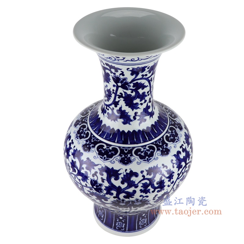 青花缠枝莲赏瓶大号,产品编号:RXAL09 产品尺寸(单位cm): 高60.5直径34.4口径10底径20.9重量11.85KG