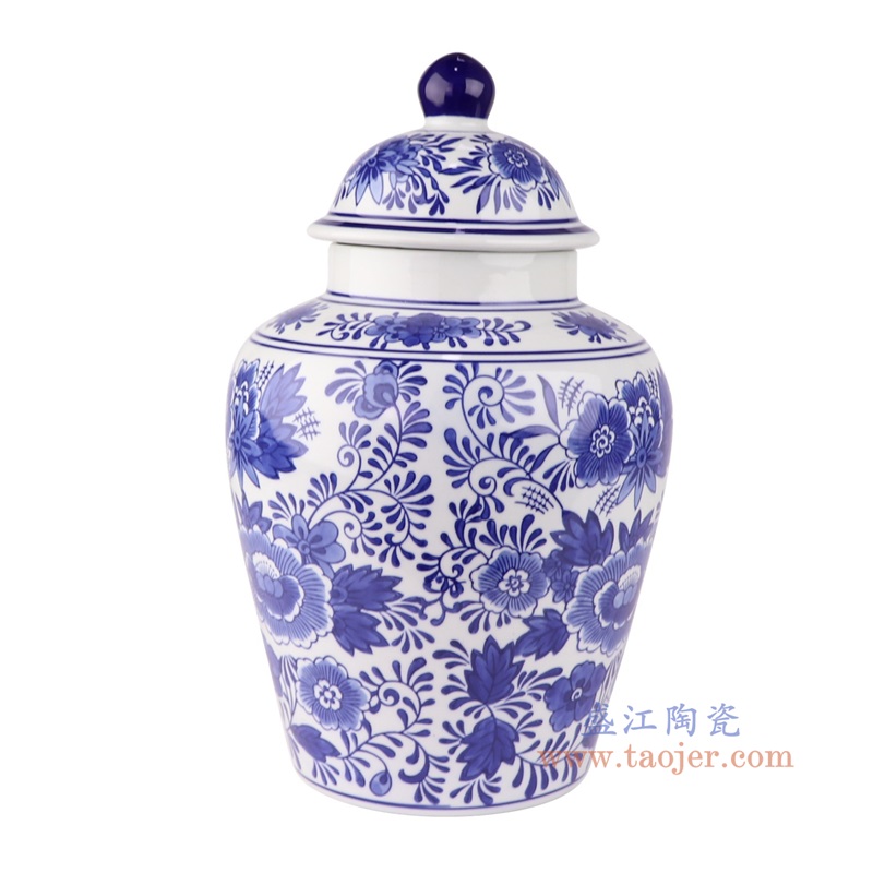 青花瓷(blue and white porcelain),又称白地青花瓷,常简称青花,是中国瓷器的主流品种之一,属釉下彩瓷。青花瓷是用含氧化钴的钴矿为原料,在陶瓷坯体上描绘纹饰,再罩上一层透明釉,经1300℃左右高温还原焰烧制而成。钴料烧成后呈蓝色,具有着色力强、发色鲜艳、烧成率高、呈色稳定的特点。汉族劳动人民制作瓷器的历史悠久,品种繁多。原始青花瓷于唐宋已见端倪,成熟的青花瓷则出现在元代景德镇的湖田窑。明代青花成为瓷器的主流。清康熙时发展到了顶峰。景德镇青花瓷以其烧造精致而独占熬头,造型优美,色彩绚丽,装饰精美,是景德镇四大传统名瓷之一,它无铅无毒,耐酸耐磨,面色经久不退,素有“永不凋谢的青花”之称。 本品坯胎全手工拉坯制作,釉面和青花料采用高档仿清颜料。瓶身山水风景图团花簇拥,构图优美,瓶颈花卉、圈足纹图和瓶身山水风景图交相辉映,相得益彰,层次清晰,瓷质温和细腻,釉色古朴清丽,晶莹丰润,清新养目,极具古意,具有较高的艺术欣赏和实用价值。