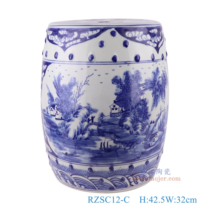 青花瓷(blue and white porcelain),又称白地青花瓷,常简称青花,是中国瓷器的主流品种之一,属釉下彩瓷。青花瓷是用含氧化钴的钴矿为原料,在陶瓷坯体上描绘纹饰,再罩上一层透明釉,经1300℃左右高温还原焰烧制而成。钴料烧成后呈蓝色,具有着色力强、发色鲜艳、烧成率高、呈色稳定的特点。汉族劳动人民制作瓷器的历史悠久,品种繁多。原始青花瓷于唐宋已见端倪,成熟的青花瓷则出现在元代景德镇的湖田窑。明代青花成为瓷器的主流。清康熙时发展到了顶峰。景德镇青花瓷以其烧造精致而独占熬头,造型优美,色彩绚丽,装饰精美,是景德镇四大传统名瓷之一,它无铅无毒,耐酸耐磨,面色经久不退,素有“永不凋谢的青花”之称。 本品坯胎全手工拉坯制作,釉面和青花料采用高档仿清颜料。瓶身山水风景图团花簇拥,构图优美,瓶颈花卉、圈足纹图和瓶身山水风景图交相辉映,相得益彰,层次清晰,瓷质温和细腻,釉色古朴清丽,晶莹丰润,清新养目,极具古意,具有较高的艺术欣赏和实用价值。