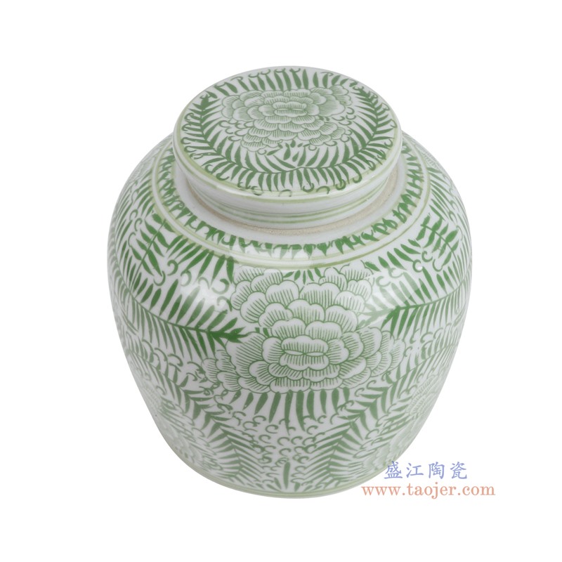 RZSI10-E 绿色牡丹纹眀罐 高22.3直径22底径18.2重量2.15KG