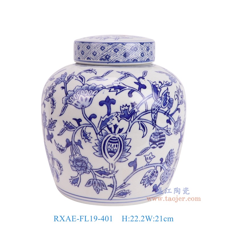 RXAE-FL19-401 8.5英寸青花花鸟平顶罐 高21.5直径20