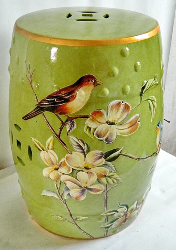 景德镇 颜色釉 深绿色 花鸟陶瓷鼓凳 换鞋凳 边几櫈 奢华大气实用摆件