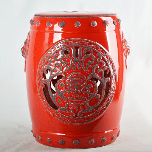 XY16-0709-7 (132) 景德镇 美式中国红镂空做旧效果仿古破坏中高温色釉陶瓷凳子瓷墩厂家直销