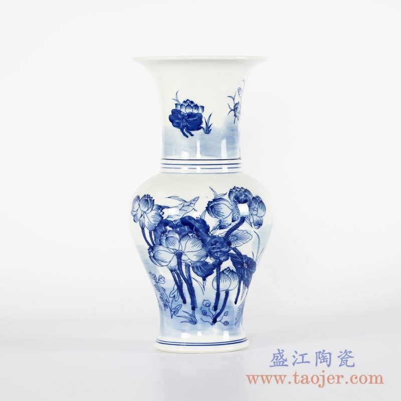 产品工艺:青花瓷(blue and white porcelain),又称白地青花瓷,常简称青花,是中国瓷器的主流品种之一,属釉下彩瓷。青花瓷是用含氧化钴的钴矿为原料,在陶瓷坯体上描绘纹饰,再罩上一层透明釉,经1300℃左右高温还原焰烧制而成。钴料烧成后呈蓝色,具有着色力强、发色鲜艳、烧成率高、呈色稳定的特点。汉族劳动人民制作瓷器的历史悠久,品种繁多。原始青花瓷于唐宋已见端倪,成熟的青花瓷则出现在元代景德镇的湖田窑。明代青花成为瓷器的主流。清康熙时发展到了顶峰。景德镇青花瓷以其烧造精致而独占熬头,造型优美,色彩绚丽,装饰精美,是景德镇四大传统名瓷之一,它无铅无毒,耐酸耐磨,面色经久不退,素有“永不凋谢的青花”之称。 本品坯胎全手工拉坯制作,釉面和青花料采用高档仿清颜料。瓶身山水风景图团花簇拥,构图优美,瓶颈花卉、圈足纹图和瓶身山水风景图交相辉映,相得益彰,层次清晰,瓷质温和细腻,釉色古朴清丽,晶莹丰润,清新养目,极具古意,具有较高的艺术欣赏和实用价值。 手绘是应用于各个行业手工绘制图案的技术手法,设计类手绘主要是前期构思设计方案的研究型手绘和设计成果部分的表现型手绘,前期部分被称为草图,成果部分被称为表现图或者效果图。手绘内容很广阔,所以言语无法尽善表达。