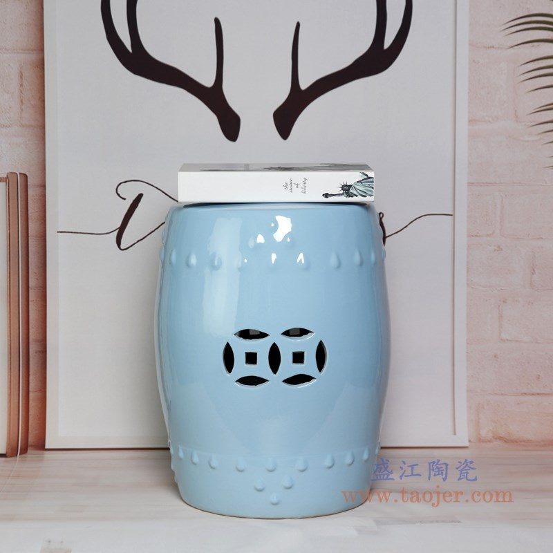 RZKL03-H 盛江陶瓷 陶瓷高温单色釉鼓凳凉墩凳子家居摆饰圆凳换鞋凳子