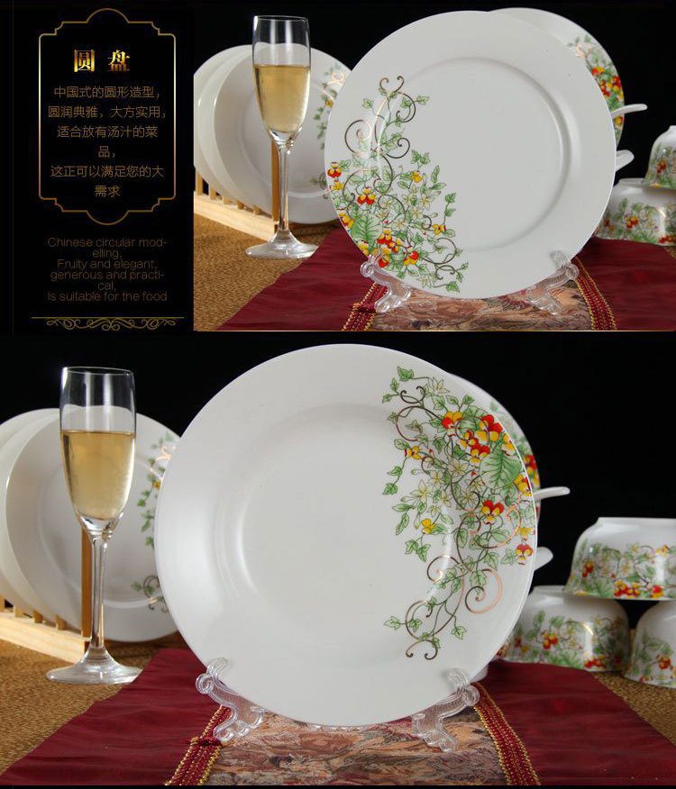 产品介绍:56头基本配置:4.5寸饭碗10个,味碟10个,小勺10个,筷子架10个,浅盘4个,深盘6个,品锅1个,12寸鱼盘1个,10寸平盘1个,烟灰缸1个,牙签筒1个,大勺1个 骨质瓷(Bone china): 简称骨瓷,亦称骨灰瓷,生产始于英国,学界一般认为第一个成功生产出骨质瓷的英国人是约西亚· 斯波德(Josiah Spode)(1755-1827年)。乔西亚.斯波德将煅烧后的骨头与瓷土和矿物熔剂直接混合而成为传统的硬质瓷原料,在19世纪初试验成功。随后他又开始进行生产骨瓷配方的系统性研究,1821年底,骨灰和瓷石多少的比例被“标准化”,当时,人们认为以长石为熔剂含骨灰46%的坯料生产出的瓷器是最好的产品。 骨质瓷基本工艺是以动物的骨炭、粘土、长石和石英为基本原料,经高温素烧和低温釉烧两次烧制而成的一种瓷器。区别骨瓷与其它瓷器之间的依据是:1、骨炭含量36%以上(国家标准);2、经过二次烧成(素烧,釉烧)。根据英国所设的骨瓷标准,含有30%来自动物骨骼中的磷酸三钙,且成品具有透光性,方称为骨瓷。