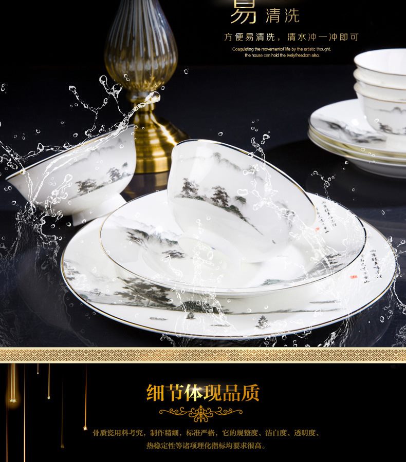 产品介绍:56头基本配置:4.5寸饭碗10个,味碟10个,小勺10个,筷子架10个,浅盘4个,深盘6个,品锅1个,12寸鱼盘1个,10寸平盘1个,烟灰缸1个,牙签筒1个,大勺1个 骨质瓷(Bone china): 简称骨瓷,亦称骨灰瓷,生产始于英国,学界一般认为第一个成功生产出骨质瓷的英国人是约西亚· 斯波德(Josiah Spode)(1755-1827年)。乔西亚.斯波德将煅烧后的骨头与瓷土和矿物熔剂直接混合而成为传统的硬质瓷原料,在19世纪初试验成功。随后他又开始进行生产骨瓷配方的系统性研究,1821年底,骨灰和瓷石多少的比例被“标准化”,当时,人们认为以长石为熔剂含骨灰46%的坯料生产出的瓷器是最好的产品。 骨质瓷基本工艺是以动物的骨炭、粘土、长石和石英为基本原料,经高温素烧和低温釉烧两次烧制而成的一种瓷器。区别骨瓷与其它瓷器之间的依据是:1、骨炭含量36%以上(国家标准);2、经过二次烧成(素烧,釉烧)。根据英国所设的骨瓷标准,含有30%来自动物骨骼中的磷酸三钙,且成品具有透光性,方称为骨瓷。