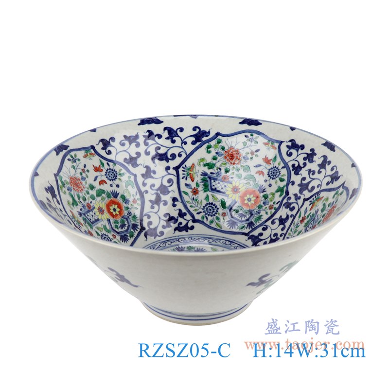 仿古彩色古彩五彩开窗缠枝莲花卉斗笠碗大碗;产品编号:RZSZ05-C       产品尺寸(单位cm):  高:14直径:31口径:底径:12重量:2KG