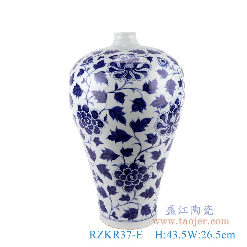 RZKR37-E 仿古元青花缠枝莲梅瓶 高:43.5直径:26.5口径:底径:14重量:5.35KG