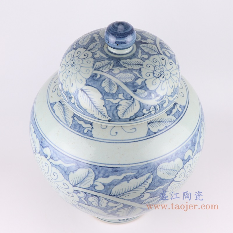 青花牡丹花卉将军罐;产品编号:RZSX53 产品尺寸(单位cm): 高:50直径:36.5口径:底径:17重量:11.6KG