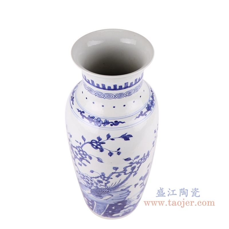 青花锦鸡花鸟花瓶;产品编号:RZKJ17       产品尺寸(单位cm):  高:42.3直径:18口径:底径:12.4重量:3.65KG