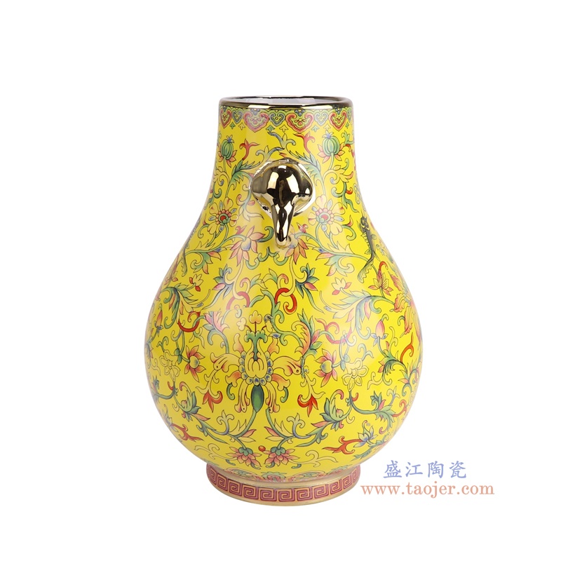Next: RZUF02-A 白底描金粉彩珐琅彩缠枝莲双耳玉壶春瓶 产品尺寸(单位cm): 高35.7直径20.3底径12.8重量2.35KG