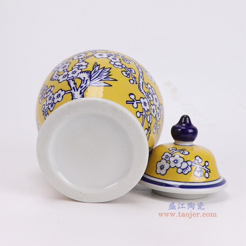 RZTO55-A 黄底喜上眉梢将军罐 高25.5直径14.8底径10.3重量1.25KG