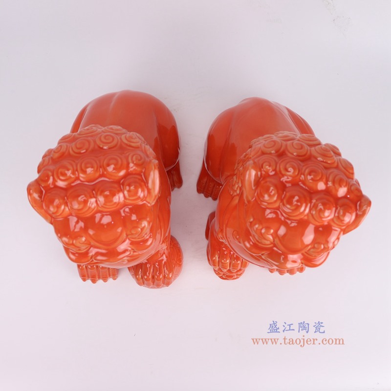 RXBX01-E 红色雕塑狮子狗一对 高31直径27重量2.15KG