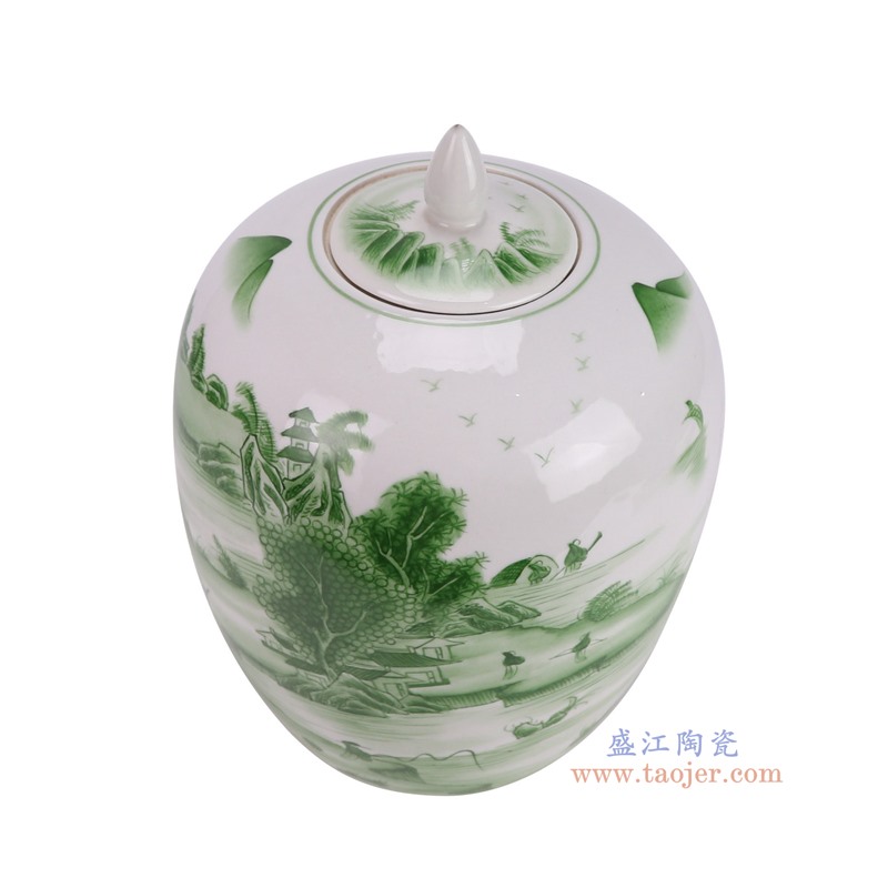 RZTX09-B 绿色山水冬瓜罐 高30直径23底径14重量1.95KG