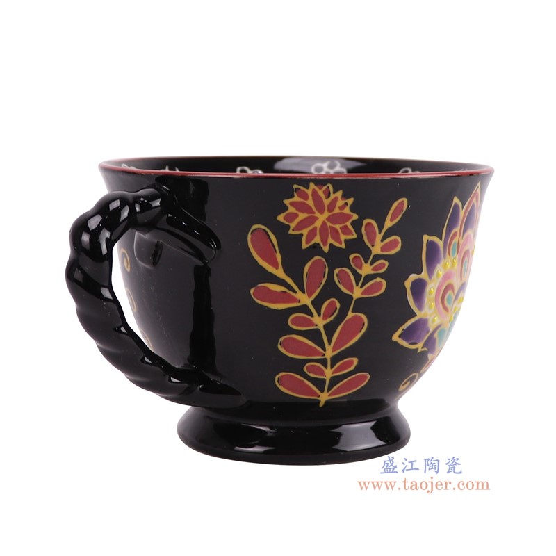 RXCM11-A 黑底彩绘花叶纹6寸咖啡杯子 高8.6直径14.8底径7重量0.35KG