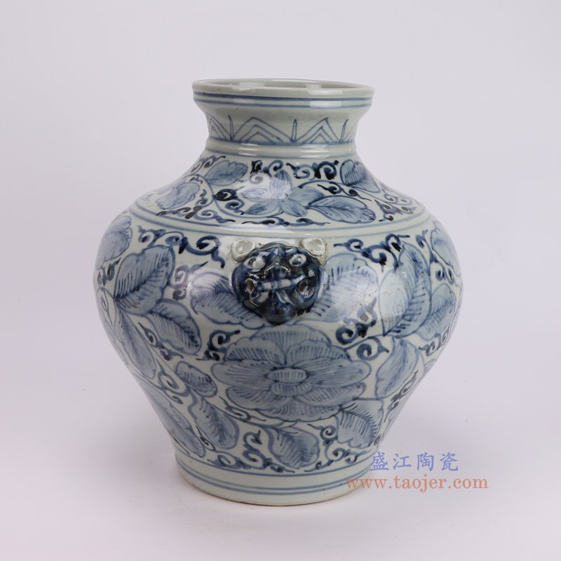 RZSX103-A 仿古脚踩泥青花牡丹纹狮耳罐 高37.3直径34底径18.3重量6.2KG