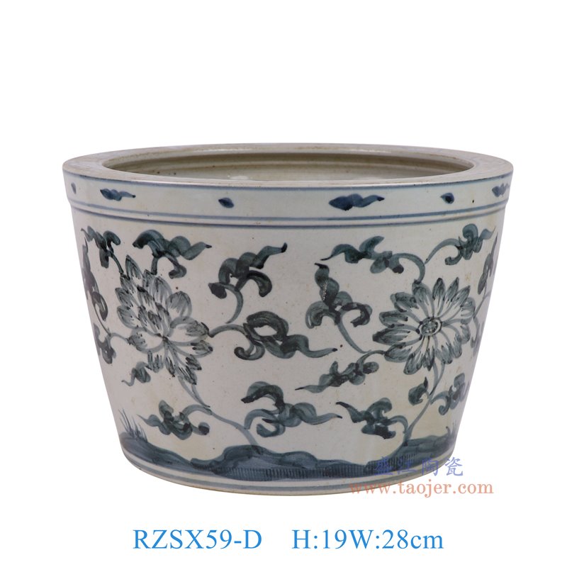 RZSX59-D 仿古脚踩泥青花缠枝莲花卉脚盆缸 高19直径28底径21重量4.6KG