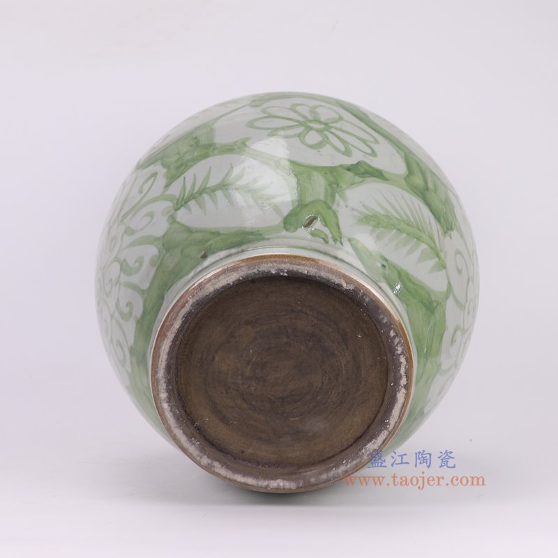 RZSX97-A 仿古脚踩泥绿底白牡丹纹赏瓶 高41.5直径29底径16重量5.1KG