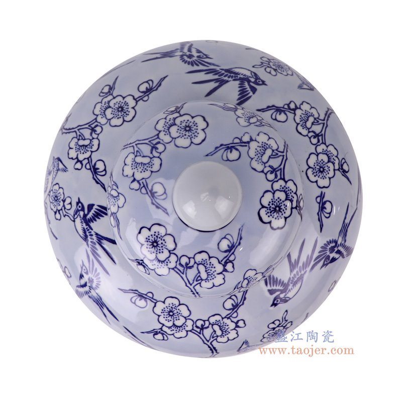 RXAE-FL19-1000F 青花浅蓝底花鸟将军罐 高25.5直径22.2底径14重量1.65KG