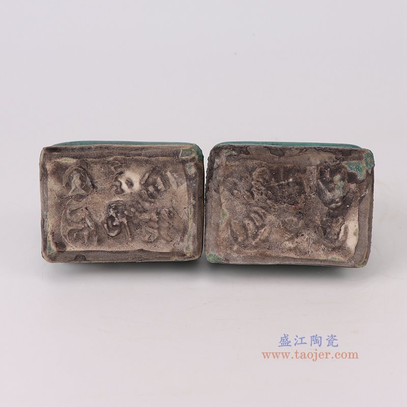 RXCW07-A 绿色雕刻狮子狗一对 高11直径8重量0.2KG